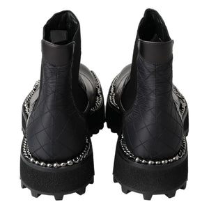 Dolce & Gabbana Black Leather Slip on Stretch Boots