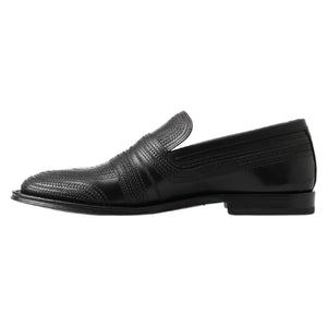 Dolce & Gabbana Black Leather Slipper Loafers Stitched Shoes