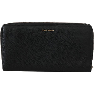 Dolce & Gabbana Black Mens Zipper Continental Purse 100% Leather Wallet