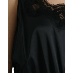 Dolce & Gabbana Black Polyester Lace Trim Sheath Midi Dress