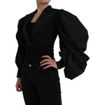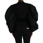 Dolce & Gabbana Black Polyester Puffed Sleeves Cropped Jacket