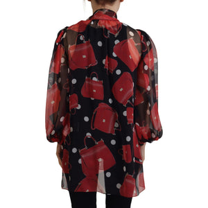 Dolce & Gabbana Black Red Sicily Bag Silk Shirt Top Blouse