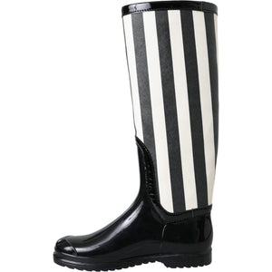 Dolce & Gabbana Black Rubber Knee High Flat Boots Shoes
