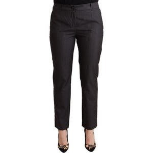 Dolce & Gabbana Black Striped Wool Tapered Trouser Pants
