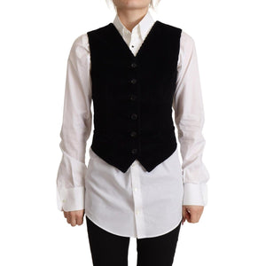 Dolce & Gabbana Black V-neck Leopard Corduroy Button Vest Top