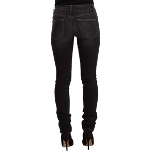 • GF Ferre Black Washed Mid Waist Cotton Denim Skinny Jeans