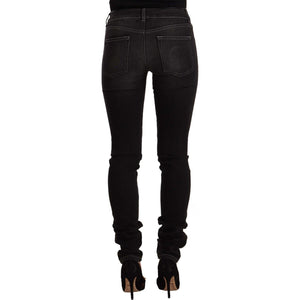 • GF Ferre Black Washed Mid Waist Cotton Skinny Slim Fit Jeans