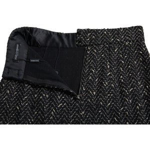 Dolce & Gabbana Black Wool Knit Tweed High Waist Mini Skirt