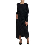 Dolce & Gabbana Black Wool Wrap Sheath Midi Gown Dress