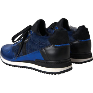Dolce & Gabbana Blue Black Calf Hair Leather Sneakers Shoes