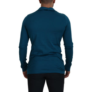 Dolce & Gabbana Blue Cotton Collared Slim Pullover Sweater