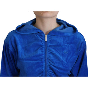 Juicy Couture Blue Cotton Full Zip Cropped Hooded Sweatshirt Sweater