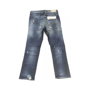Elevate your denim dreams with the distinct quality of Jacob Cohen. These 5-pocket jeans feature a chic straight leg cut with subtlety placed small rips for an edge of sophistication. Crafted with finesse, each detail from the logo-embossed button to the intricate logo embroidery on the pocket, radiates exclusivity. Adorned with a luxurious pony skin label boasting the Jacob Cohen emblem, these jeans are a statement of refined taste, blending Italian craftsmanship with innovative style in a pristine blue hue.