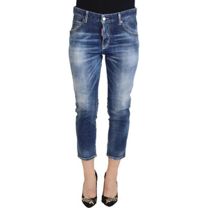 Dsquared² Blue Cotton Mid Waist Cropped Denim Jeans Cool Girl