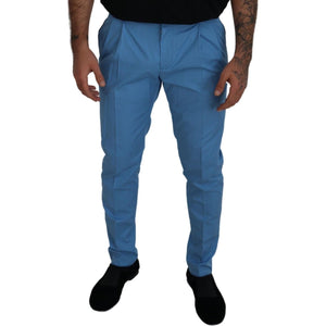 Dolce & Gabbana Blue Cotton Silk Trousers Chinos Pants
