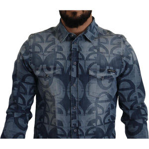 Dolce & Gabbana Blue Denim Stretch DG Logo Casual Mens Slim Shirt