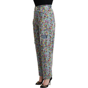 Dolce & Gabbana Blue Floral Print High Waist Denim Tapered Jeans