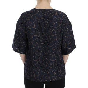 Dolce & Gabbana Blue gold key print silk blouse