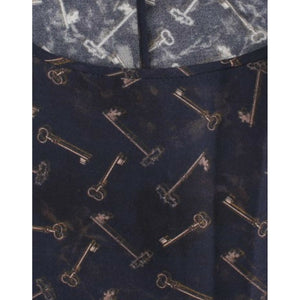 Color: Blue with gold Keys print