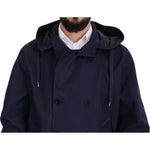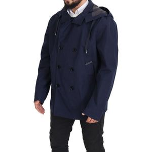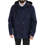 Dolce & Gabbana Blue Hooded Double Breasted Coat Jacket