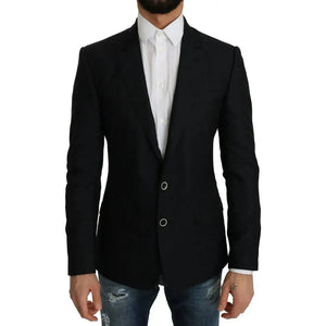 Dolce & Gabbana Blue Jacquard Slim Floral Jacket Blazer
