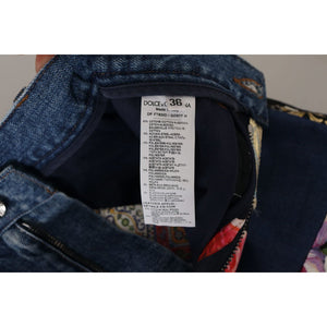 Dolce & Gabbana Blue Jeans Jacquard Majolica High Waist Pants