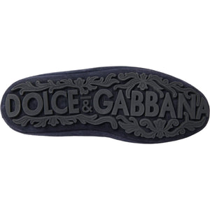 Dolce & Gabbana Blue Leather Suede Crystal Crown Loafers Shoes
