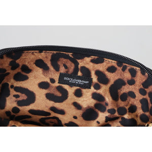 • Dolce & Gabbana Blue Logo Print Hand Pouch Leopard Print Toiletry Bag