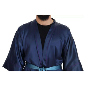 Dolce & Gabbana Blue Satin Silk Waist Belt Robe Jacket