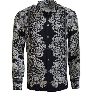 Dolce & Gabbana Blue Silk Floral Baroque Satin Casual Shirt