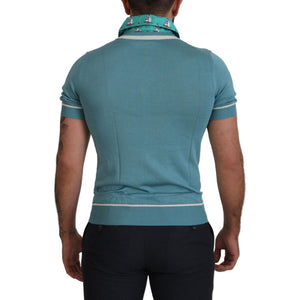 Dolce & Gabbana Blue Silk Polo Top Mens V-neck T-shirt
