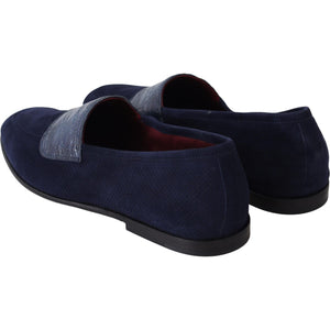 Dolce & Gabbana Blue Suede Caiman Loafers Slippers Shoes