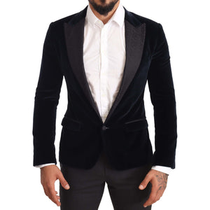 Dolce & Gabbana Blue Velvet Cotton Slim Fit Smoking Suit