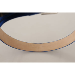 Dolce & Gabbana Blue Velvet Silver Logo Engraved Metal Buckle Belt