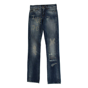 Cavalli Blue Wash Torn Cotton Straight Fit Jeans