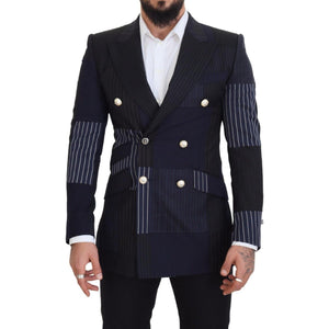Dolce & Gabbana Blue Wool Patchwork Double Breasted Blazer