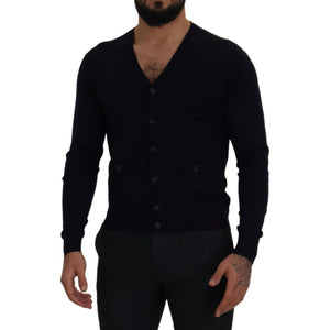 Dolce & Gabbana Blue Wool STAFF Down Cardigan Sweater