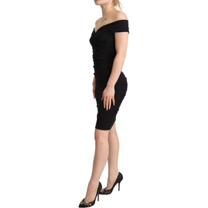 Dolce & Gabbana Bodycon Black Silk Off Shoulder Sheath Bodycon Dress