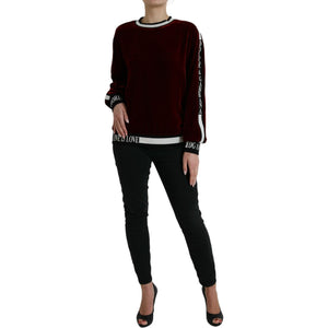 Dolce & Gabbana Bordeaux Velvet Round Neck Pullover Sweater