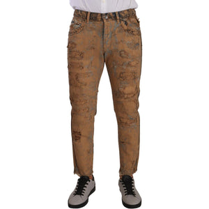 Dolce & Gabbana Brown Distressed Cotton Regular Denim Jeans
