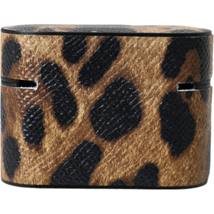 Dolce & Gabbana Brown Leopard Calf Leather Metal Logo Plaque Airpods Case