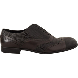 Dolce & Gabbana Brown Lizard Skin Leather Oxford Dress Shoes