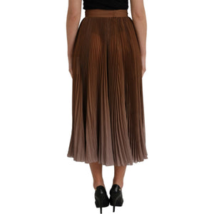 Dolce & Gabbana Brown Polyester Pleated High Waist Midi Skirt