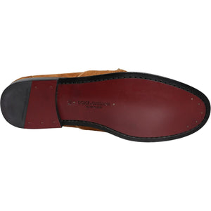 Dolce & Gabbana Brown Velvet Leather Logo Mocassin Slip On Shoes