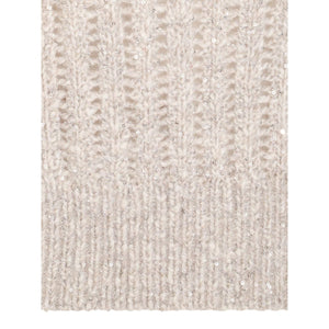 • Brunello Cucinelli Natural Knitted Crewneck Vest in beige with sequin embellishments, wool texture close-up