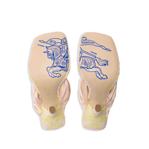 light pink/yellow leather shearling lining check print open toe branded insole logo at the sole 105mm high heel Pool Check sandals Size and Fit - Heel 4,1 in / 10,5 cm
