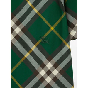 green/multicolour cotton plaid check pattern embroidered logo to the front button-down collar short sleeves curved hem Check motif cotton shirt Size and Fit - This piece fits true to size. We recommend you get your regular size. Model is 1,84m / 6ft 1in wearing size M