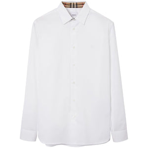 long-sleeved button-up cotton shirt from BURBERRY featuring optical white, cotton, check print, classic collar, front button fastening, long sleeves, buttoned cuffs and curved hem. Logo cotton shirt Size and Fit - This piece fits true to size. We recommend you get your regular size. Model is 1,84m / 6ft 1in wearing size M