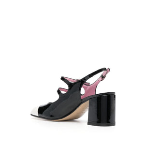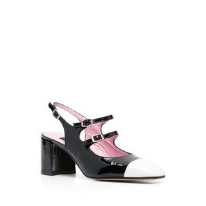 Papaya 65mm two-tone pumps from Carel Paris featuring white/black, calf leather, branded leather insole, contrasting toecap, square toe, buckle fastening and mid block heel. Papaya patent leather slingback pumps Size and Fit - Heel 2,6 in / 6,5 cm
