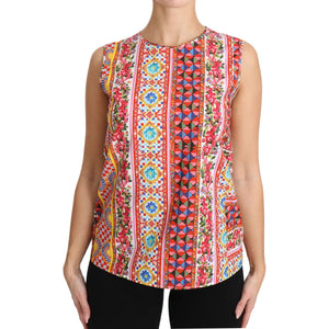 Dolce & Gabbana Carretto Print Pure Cotton Tank Top Floral Blouse
